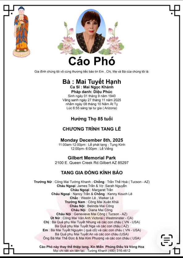 vừa từ trần vào ngày 27 tháng 11 năm 2025 tại Arizona, Hoa Kỳ