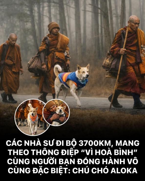 Đi bên cạnh họ là chú chó Aloka – lặng lẽ đồng hành suốt chặng đường, trở thành biểu tượng của lòng trung thành, niềm tin và sự hòa hợp giữa con người và muôn loài cùng chung sống trên Trái Đất. Chú bước đi không mệt mỏi như thể trách nhiệm về Hoà Bình Thế Giới cũng được đặt trên vai mình.