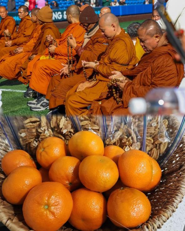 During the walking journey, the Saṅgha often receives fruits offered by kind supporters. Among them are tangerines with smooth, glossy skins, evenly shaped, each one looking equally promising, as if sweetness were guaranteed.