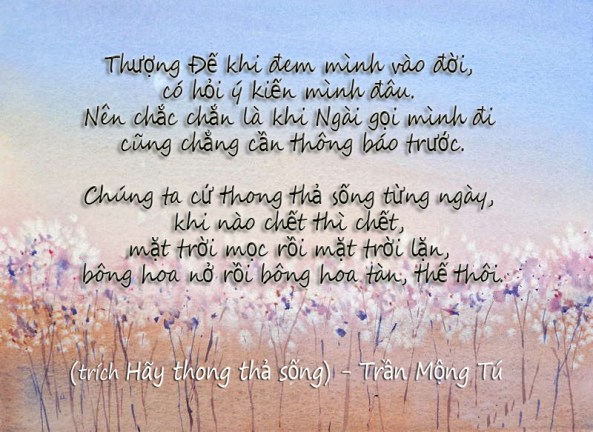 Th3 8 2025 Hãy thong thả sống (Trần Mộng Tú) Tiếp tục đọc → Chia sẻ: Bấm để gửi một liên kết tới bạn bè (Mở trong cửa sổ mới) Email Thích Đang tải...