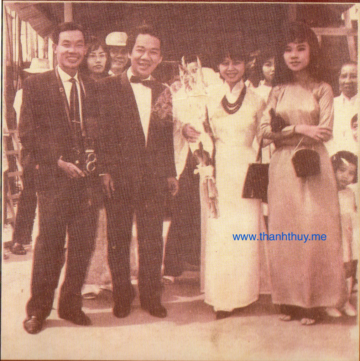 Phái đoàn nghệ sĩ tại phi trường Tân Sơn Nhất chào đón Ca Sĩ Bạch Yến từ Pháp về thăm VN năm 1963. Từ trái: NS Lê Mộng Bảo, QK Trần Văn Trạch, Bạch Yến, Thanh Thúy