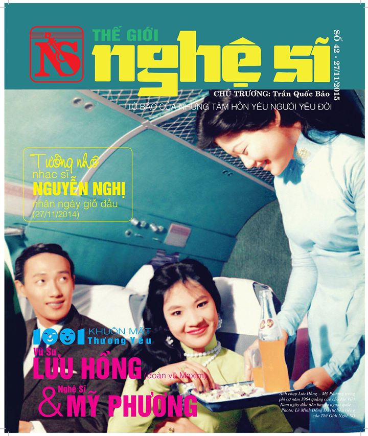Ảnh vũ sư Lưu Hồng và vợ, nghệ sĩ Mỹ Phương chụp trong phi cơ năm 1964 quảng cáo cho Air Việt Nam ngày đầu tiên bay ra ngoại quốc (Photo: Lê Minh Đống Đa)