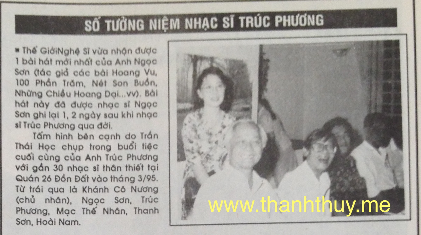 Th10 5 2015 Kiếp tằm đã dứt (Ngọc Sơn – Thế Giới Nghệ Sĩ, số tưởng niệm Nhạc Sĩ Trúc Phương) Tiếp tục đọc → Chia sẻ: Bấm để gửi một liên kết tới bạn bè (Mở trong cửa sổ mới) Email Thích Đang tải...