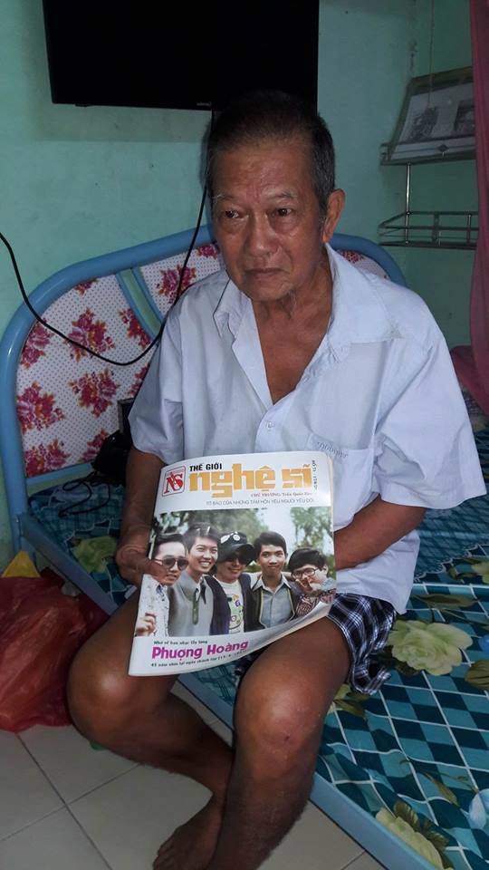 Nhạc sĩ Trung Vinh nhận được tờ báo Thế Giới Nghệ Sĩ với hình bìa là ban nhạc Phương Hoàng, mà Ông là một thành viên ngay từ ngày đầu (người thứ nhì từ trái sang phải). Nhận được 700 dollars và tờ báo, Ông cực kỳ xúc động. Theo lời nghệ sĩ Giang Kim, người chứng kiến giây phút này, chị cho biết: “Khi nhận được cuốn báo có hình ban nhạc Phượng Hoàng ông đã nói với con trai: mày thấy ba mày được báo Mỹ đưa lên trang bìa không… rồi ông ngồi khóc nức nở..”. Ảnh chụp ngày 15 tháng 9 năm 2016.