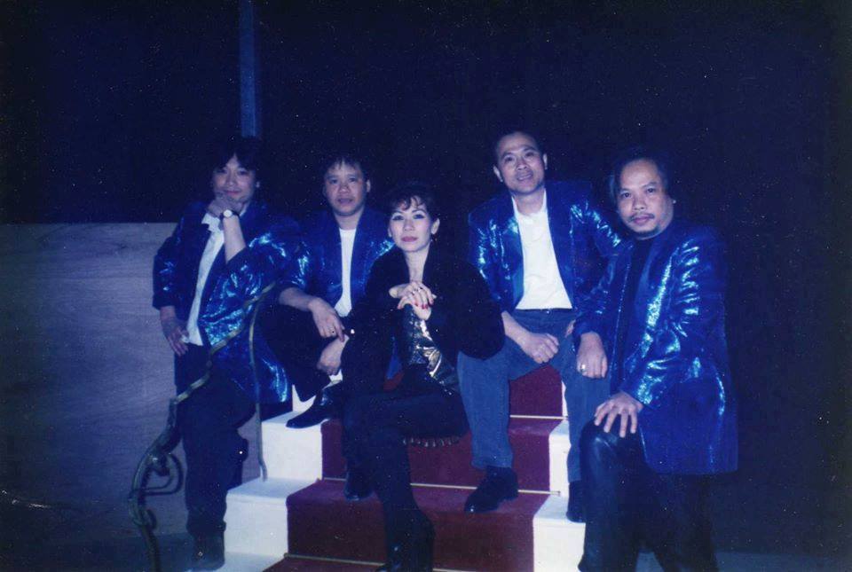 Ca sĩ Thiên Nga và ban nhạc Las Vegas chụp năm 1987. Từ trái sang phải: Kok (nhạc sĩ guitar người Hoa), Albert (Bass – chồng Thiên Nga), Thiên Nga, Ty (trống, người Thái) và Tuon (keyboard, người Miên)