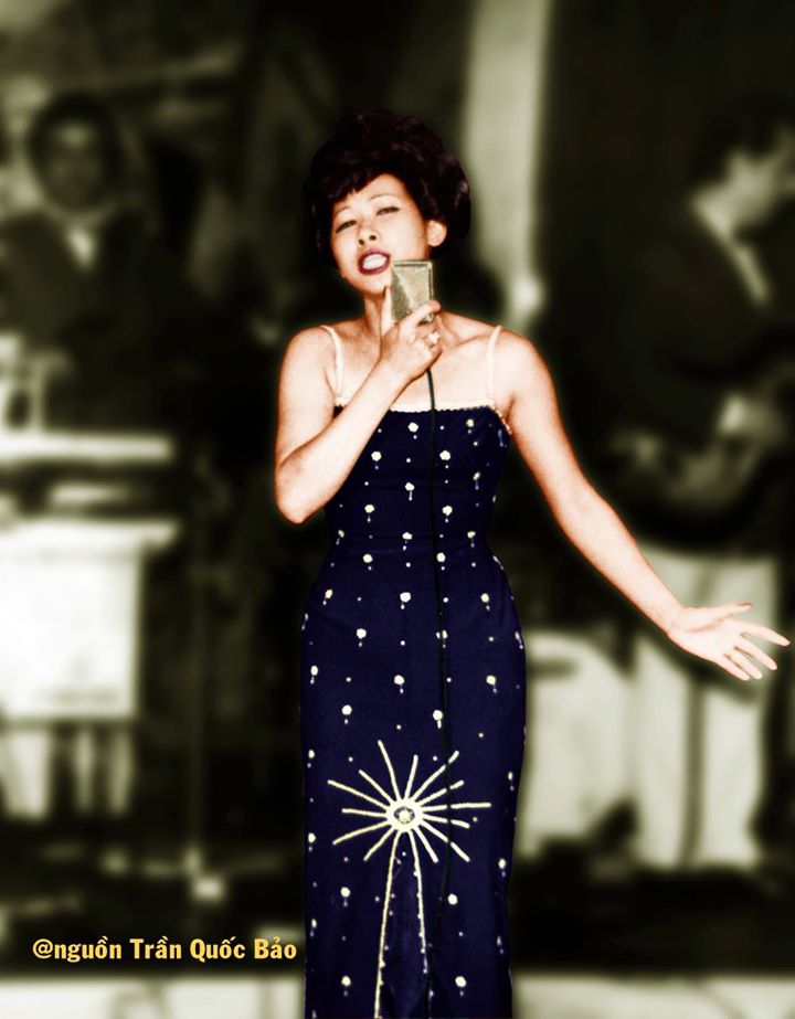 Từ trái: Nhạc sĩ violin Đào Duy Tình, nhạc sĩ Lê Vũ (Chấn), nhạc sĩ Sính (Saxo), Thiên Nga, Công Thành, Paolo, Hưng (guitare) tại phòng trà Baccara những năm 1966-1967
