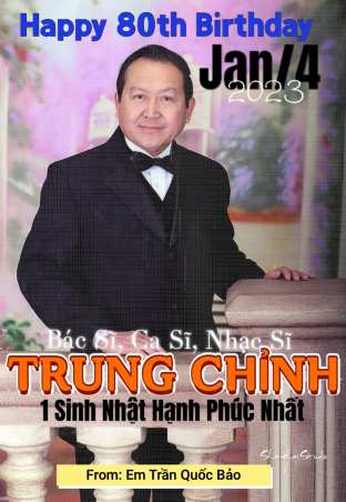 Th1 4 2024 Chúc Mừng Sinh Nhật (Jan/4) Bác Sĩ, Ca Sĩ, Nhạc Sĩ TRUNG CHỈNH (Bài: Trần Quốc Bảo) Xin bấm vào tựa bài Chia sẻ: Bấm để gửi một liên kết tới bạn bè (Mở trong cửa sổ mới) Email Thích Đang tải...